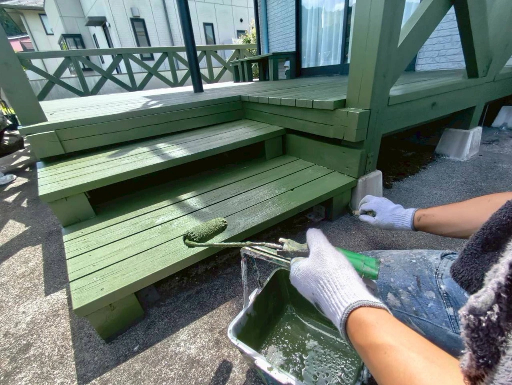 ウッドデッキ塗装|ガードラックアクアで鮮やかなグリーンに再生